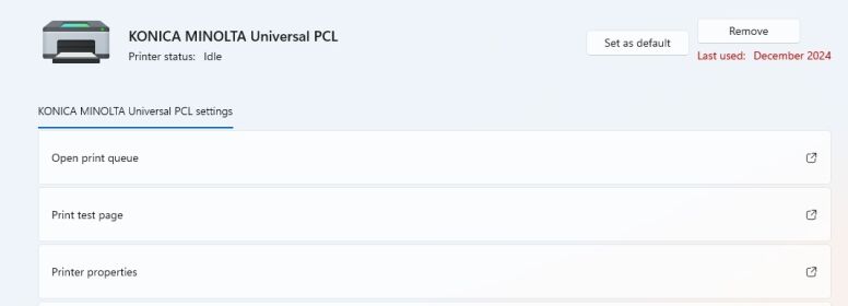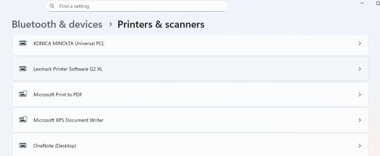 10. After this procedure you will need to point your computers print driver to the new IP address. On Mac computers you will need to reinstall the driver using Install a Konica Minolta on Mac guide. On Windows 11 you will use the Search option on your taskbar to open Printers and Scanners. Find your printer and click on it.