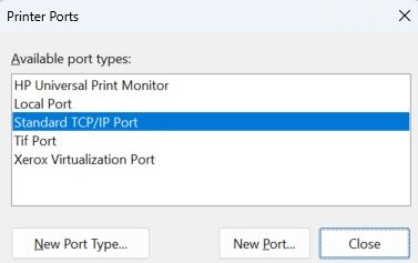 12. Click Add Port. Choose Standard TCP/IP Port and click New Port. It will start a Wizard.