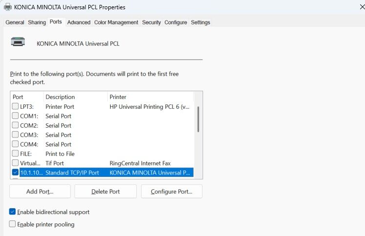 14. Click the Close button on the Printer Ports box and then click Apply in the lower right corner. Your PC is now pointed to the new IP address.