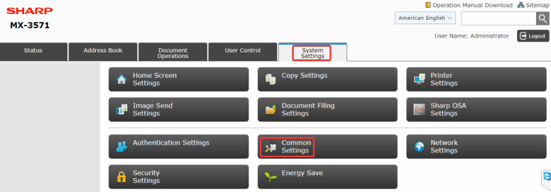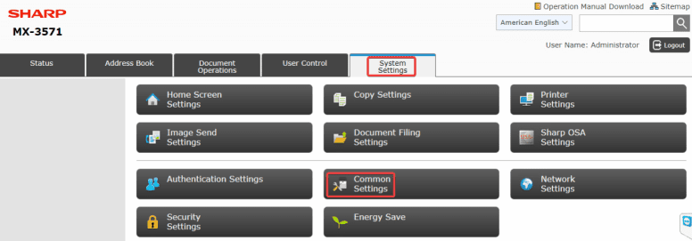 4. Once you have logged in press “System Settings” and then “Common Settings”.