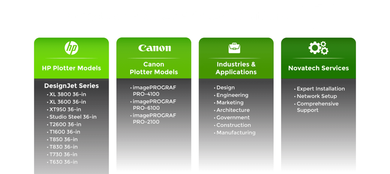 Contact Novatech today to discuss how our plotter and wide-format printer solutions can transform your professional printing experience.