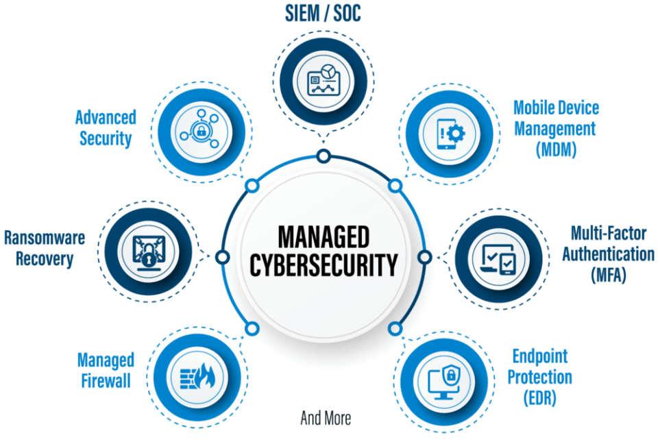 In Managed IT, cybersecurity services protect businesses from threats like malware, email phishing, ransomware and others. Our cybersecurity services combine people, processes and technology to safeguard individuals and businesses from attacks on multiple fronts: